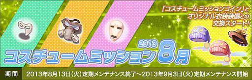 オリジナル衣装装備との交換もスタート!「コスチュームミッション2013 8月」 |