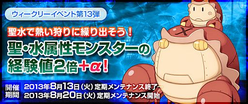 【第13弾「聖・水属性モンスターの経験値2倍+α!」開催期間】